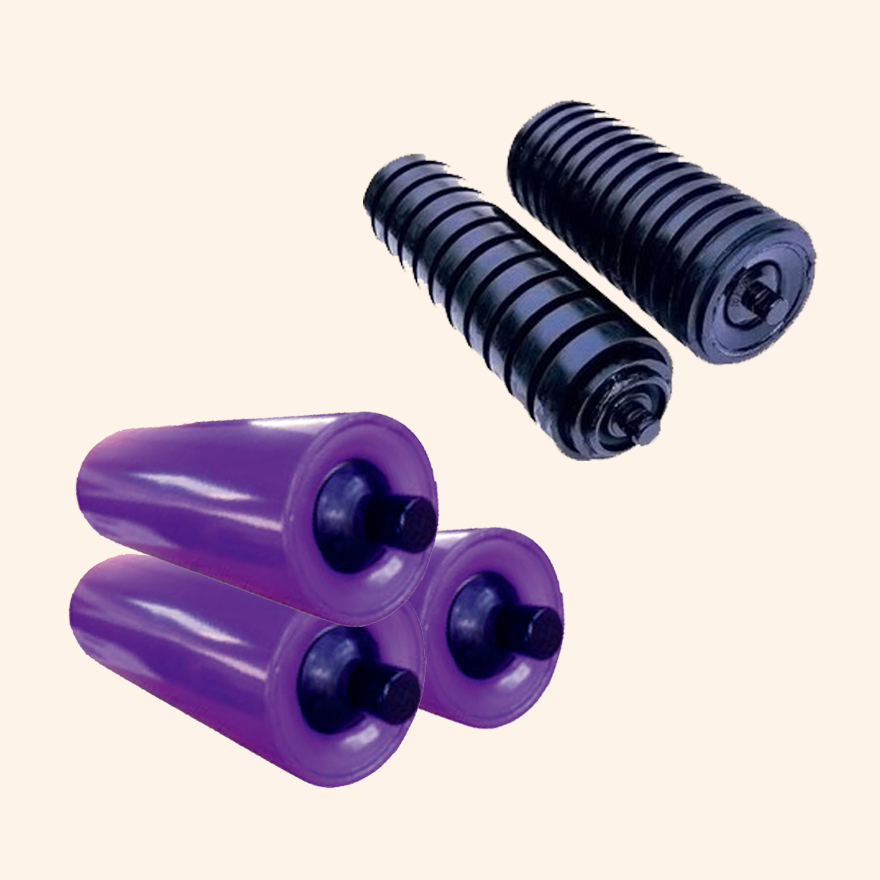 Rollers/idlers support belt and materials being transported, ensuring minimal friction and efficient operation.